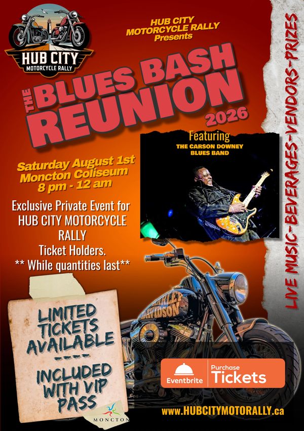 A busy Saturday as the Hub City Motorcycle Rally culminates with The 'BLUES BASH REUNION' featuring Canadian Power Blues legends,